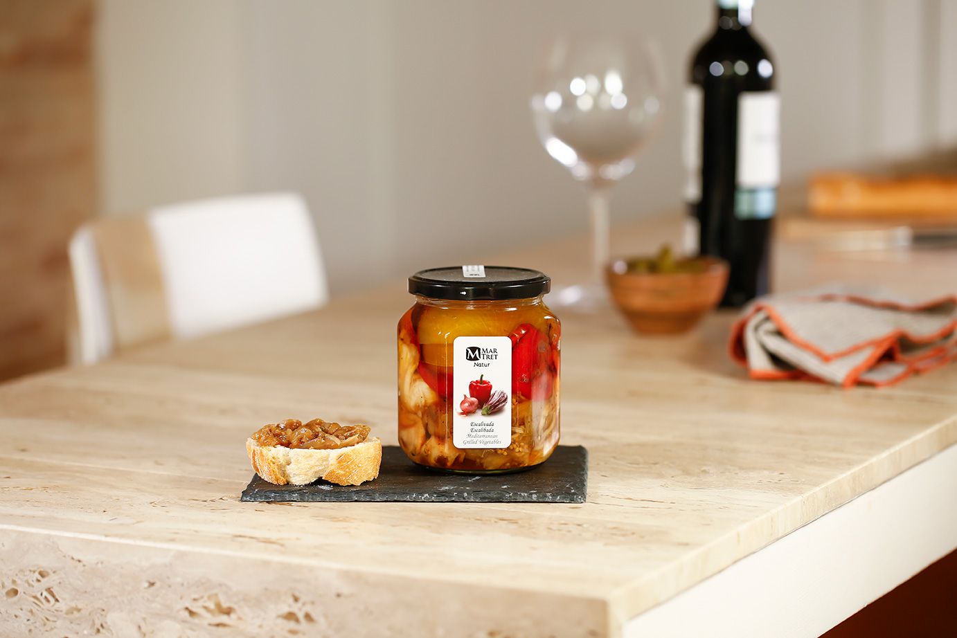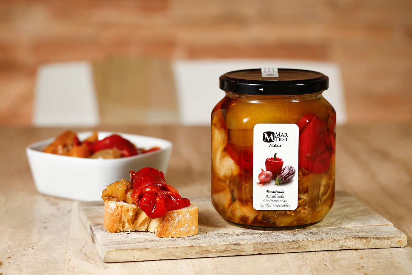 La “escalibada” es un plato típico de la cocina catalana. Su nombre viene del verbo «escalibar» que significa asar al rescoldo. En esto consiste este plato: en asar pimiento, berenjena, y cebolla en su punto justo y envasarlo en la proporción adecuada. Se